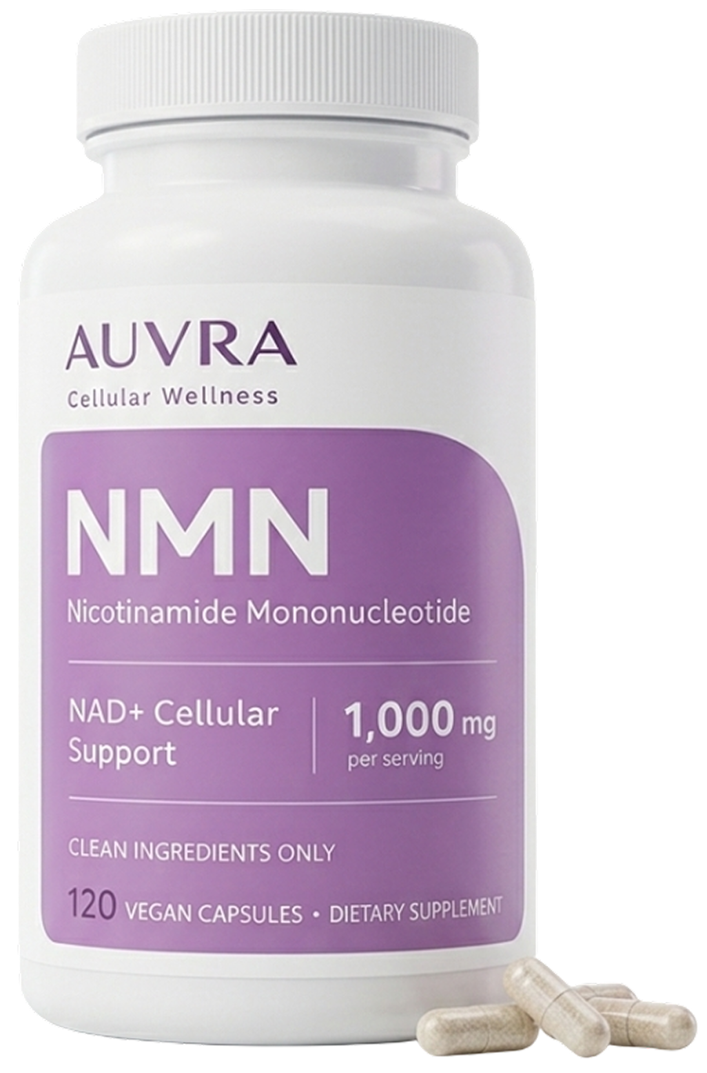 AUVRA® NMN capsules are easy to swallow, gentle on the stomach, and designed for simple daily use — because consistency is what drives results.
